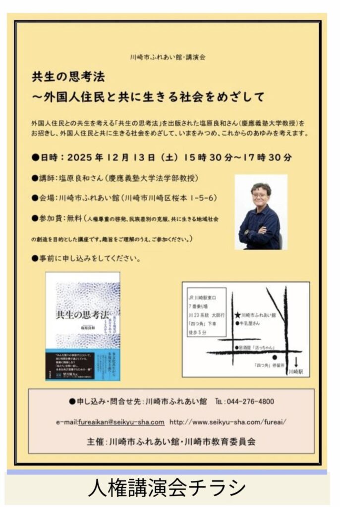 ■12月13日(土)川崎ふれあい館にて開催された人権セミナーに参加受講しました。